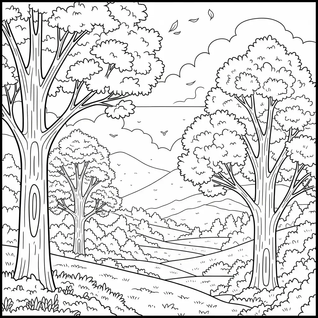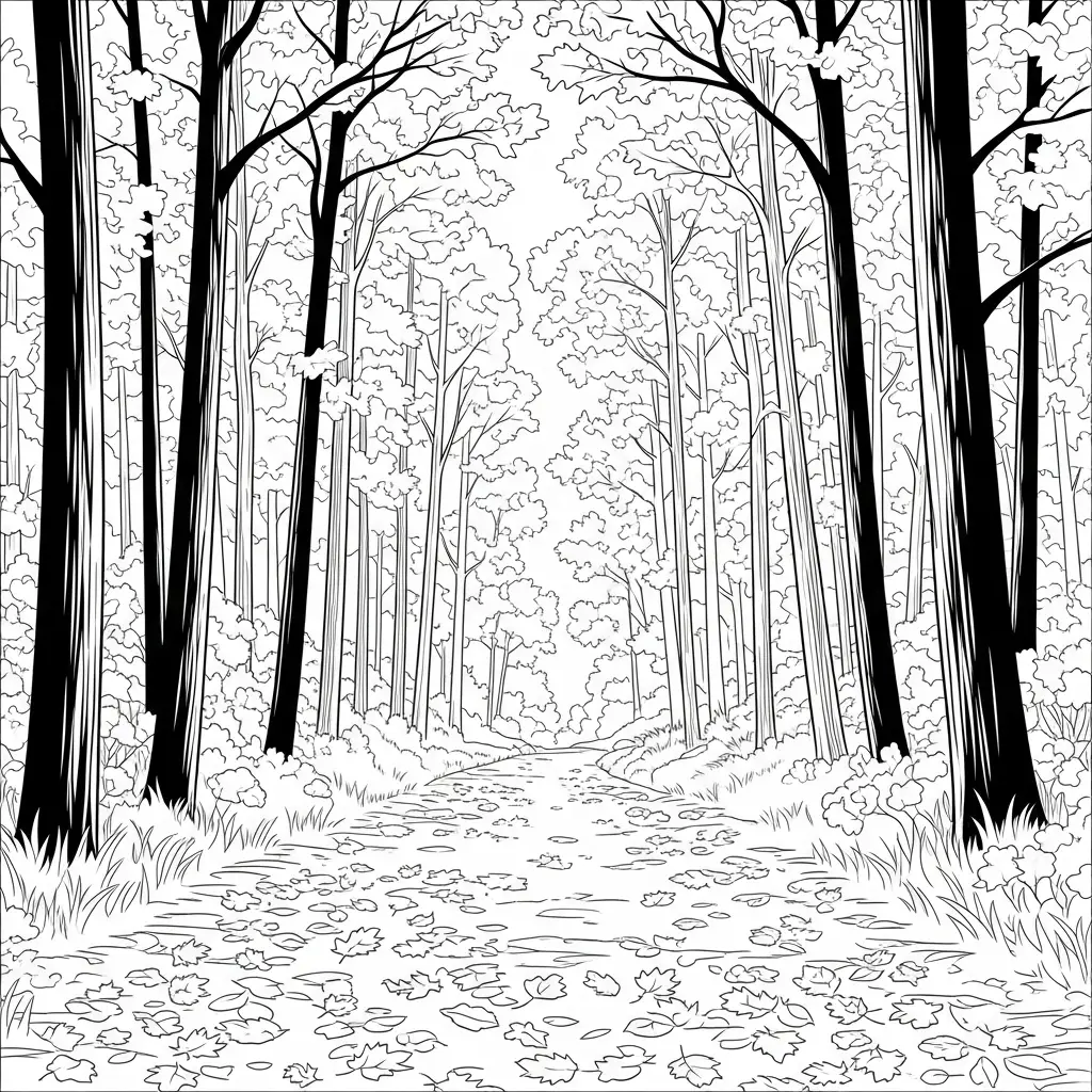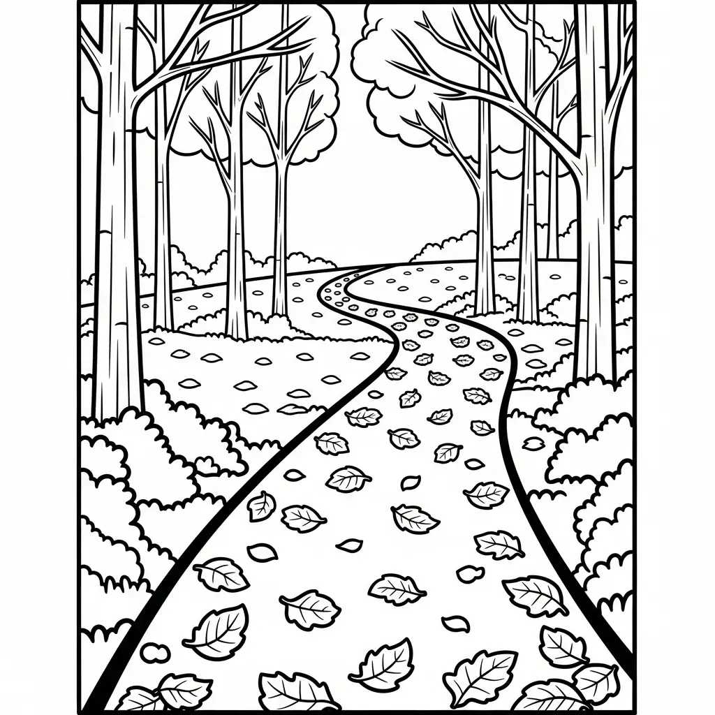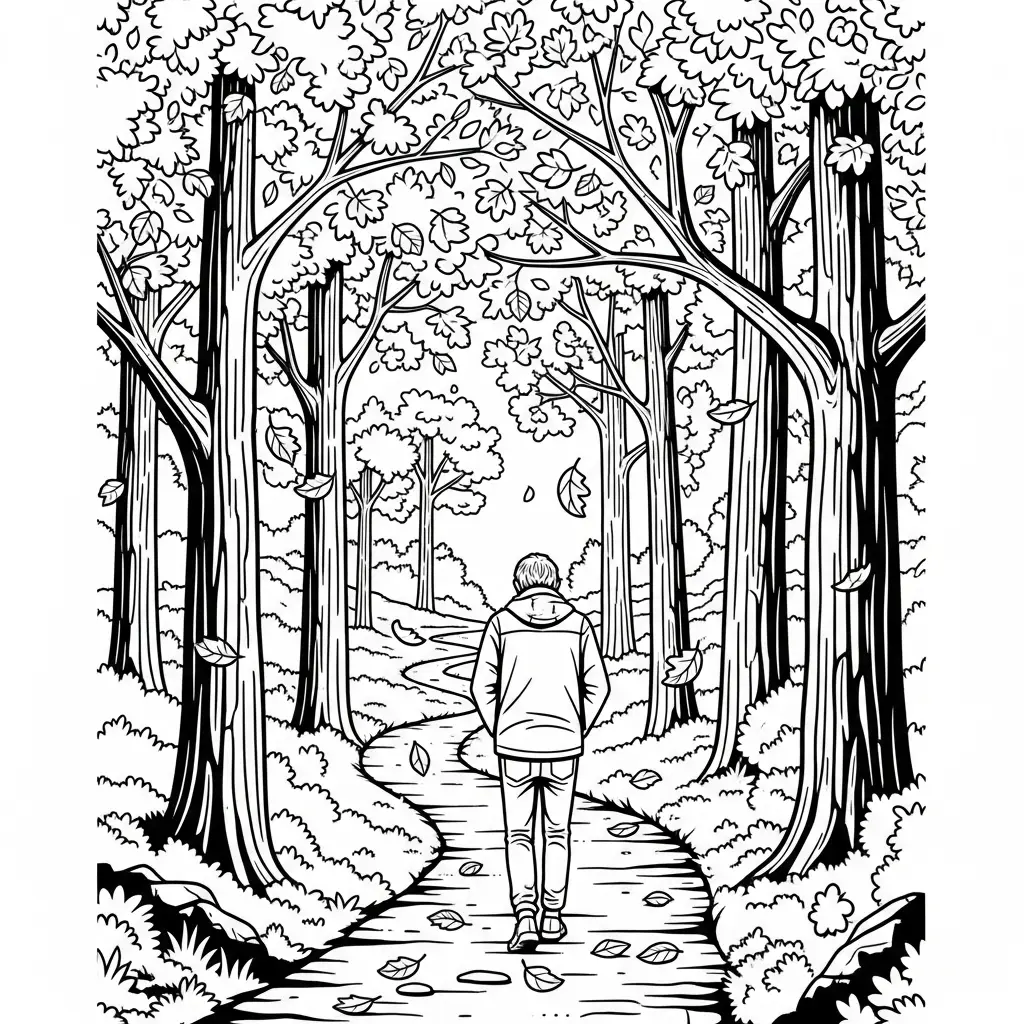 Desenho de Caminhada pelo Bosque em Outono para colorir