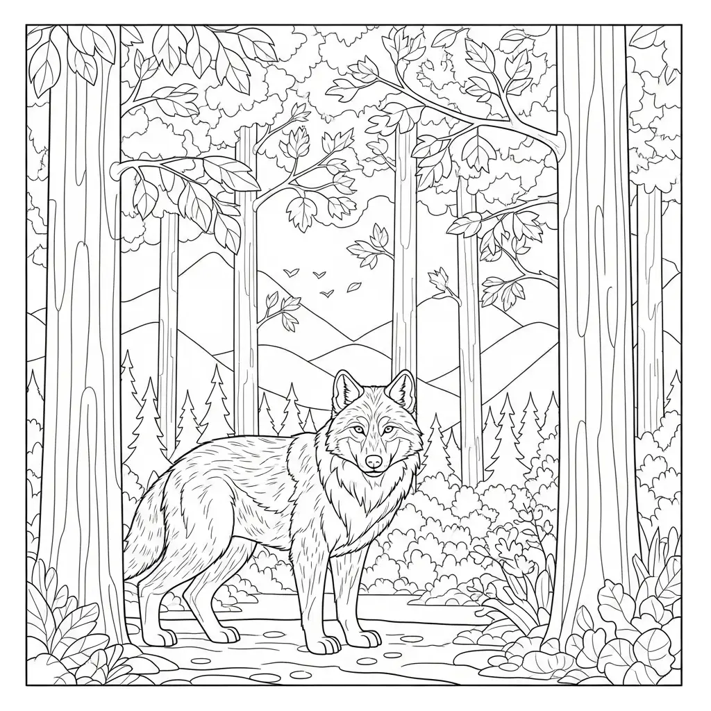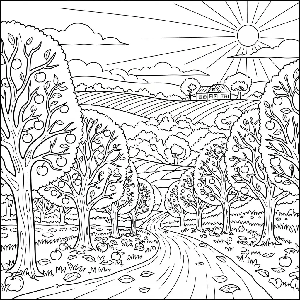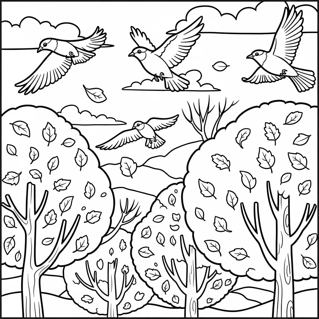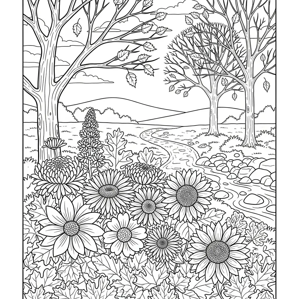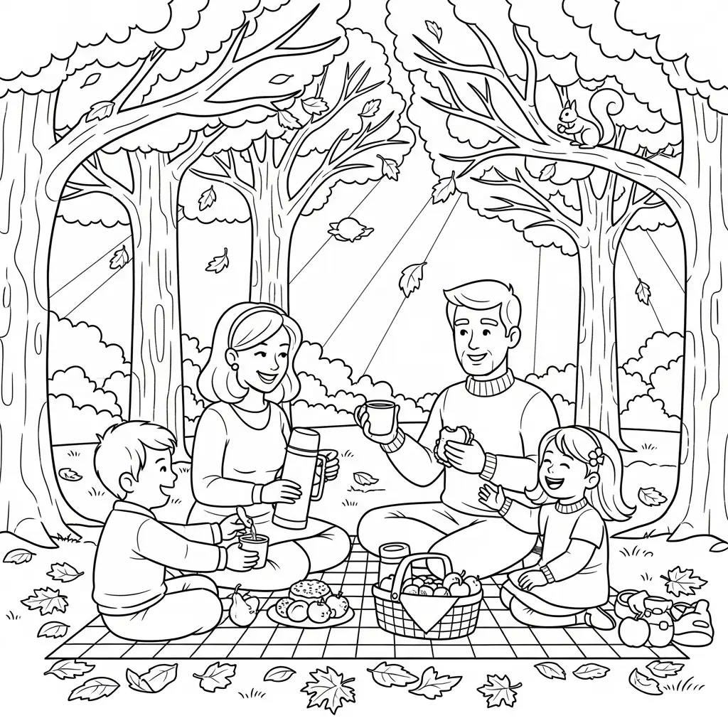 Desenho de Caminhada pelo Bosque em Outono para colorir