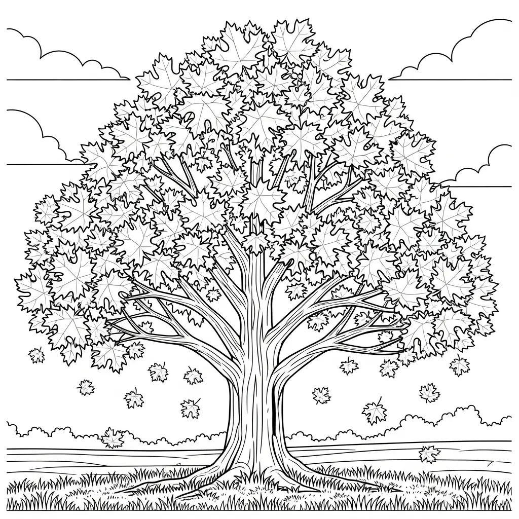 Desenho de arvore de bordo com folhas coloridas para colorir