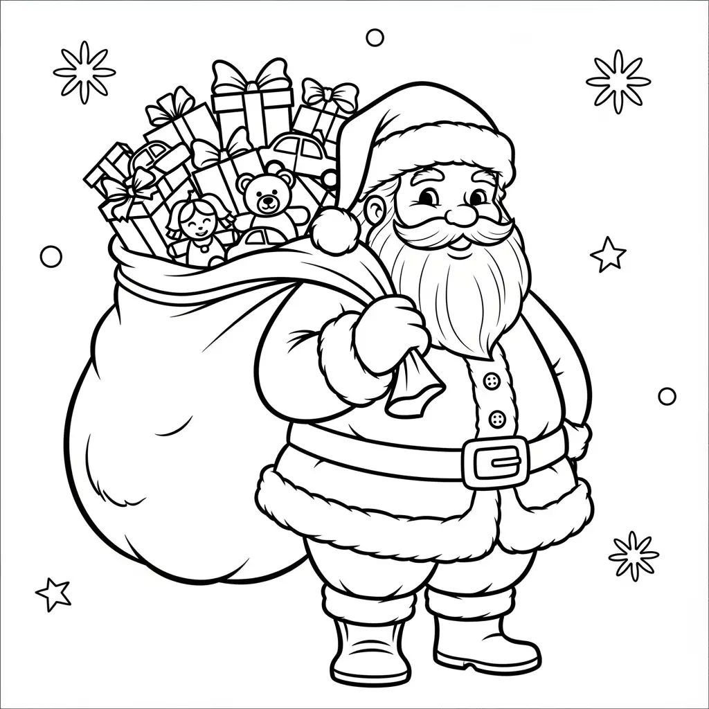 Desenho do Papai Noel com seu saco de presentes para colorir