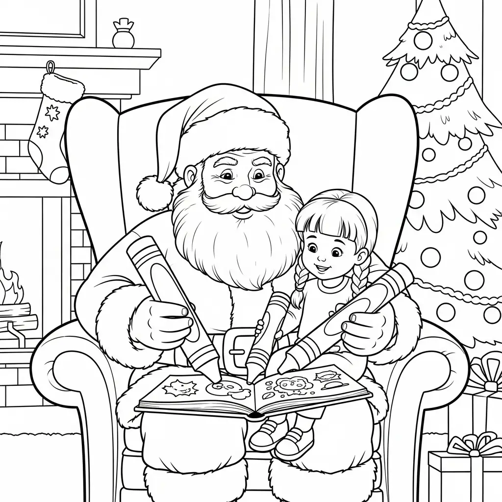 Desenho do Papai Noel e criança para colorir