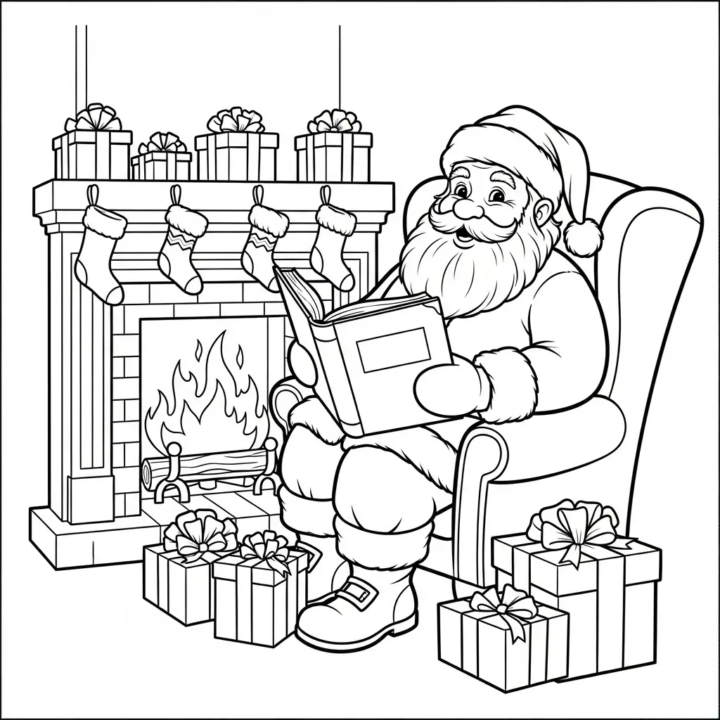 Desenho do Papai Noel lendo cartas para colorir