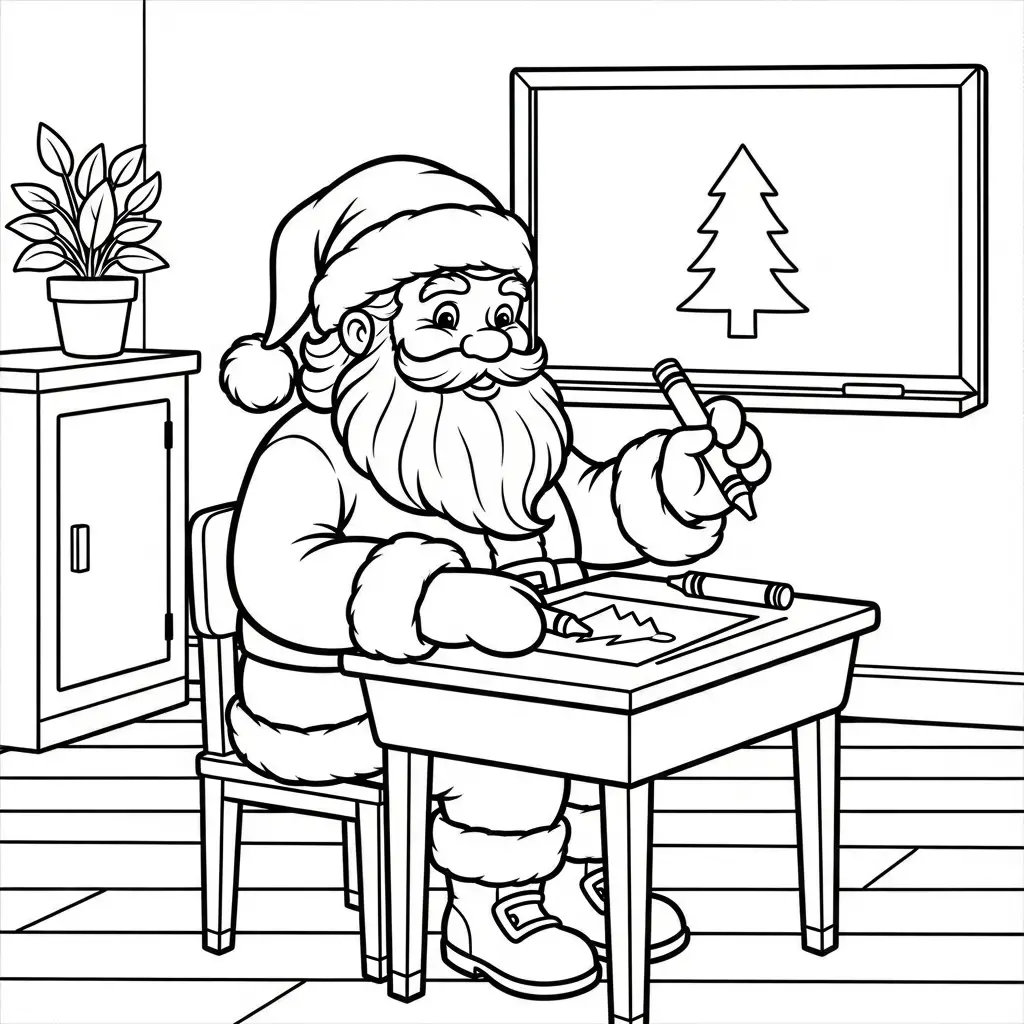 Desenho do Papai Noel na escola para colorir