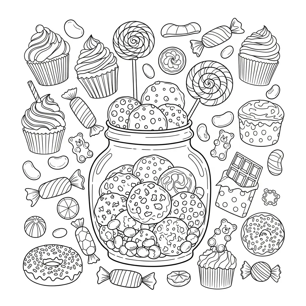 Biscoitos e doces coloridos para colorir
