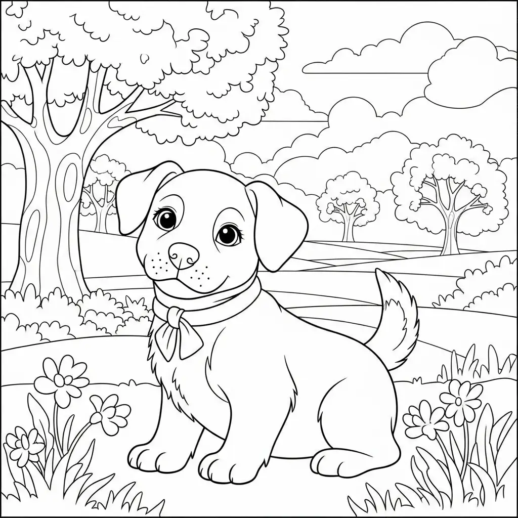 Cachorrinha no parque para colorir