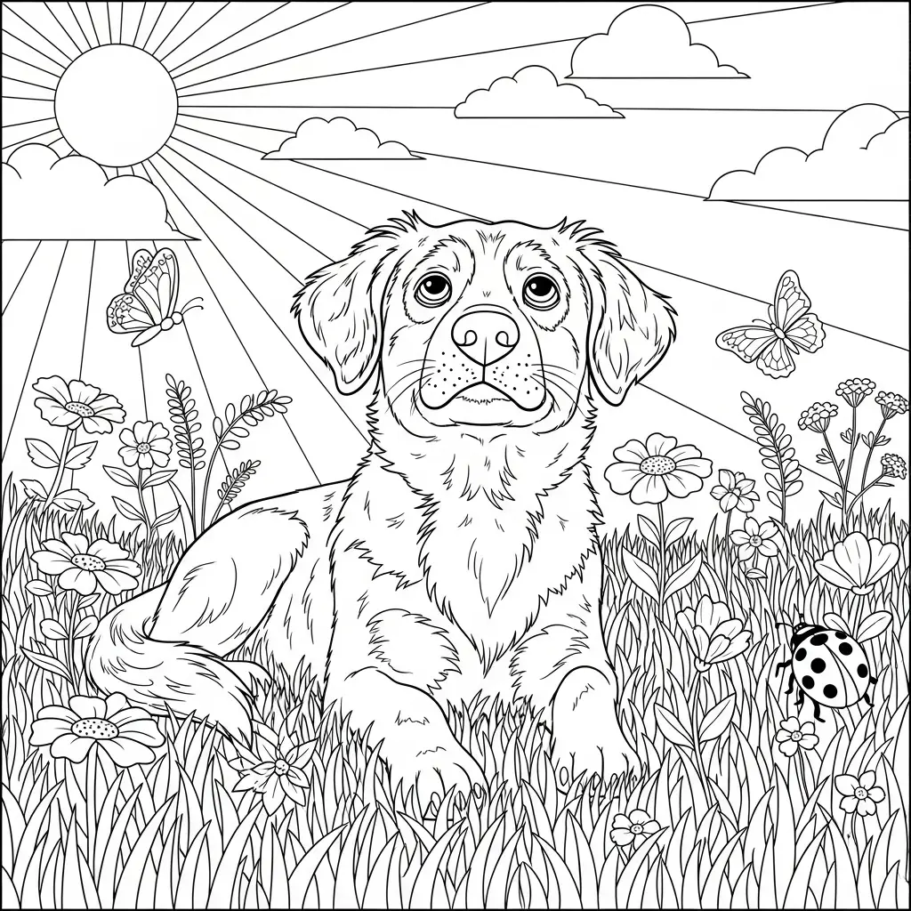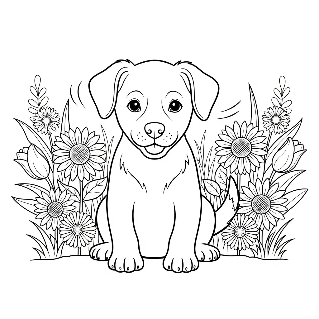 Cachorrinho e flores para colorir