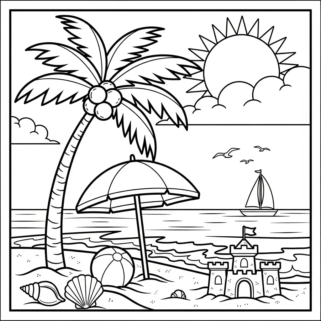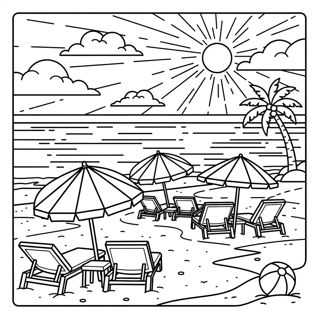 Cenário de praia para colorir
