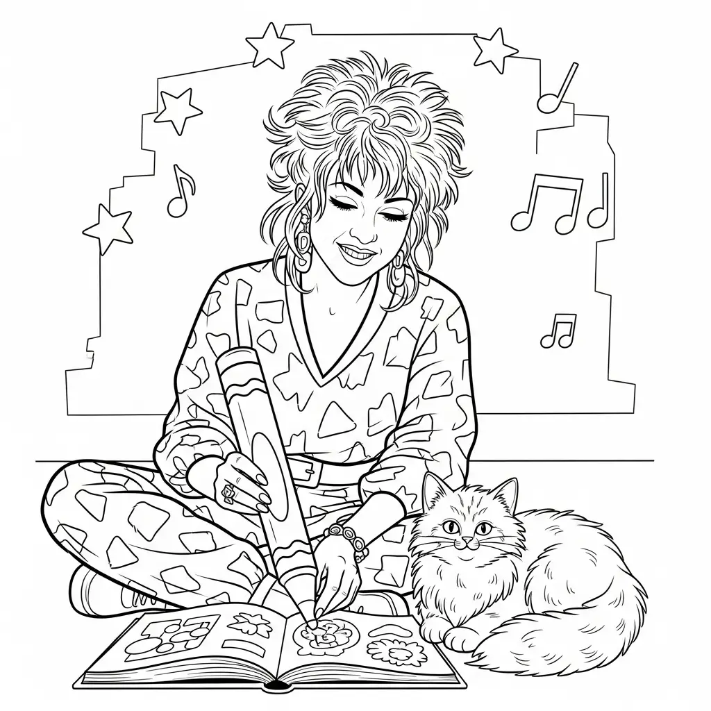 Cyndi e seu gato para colorir