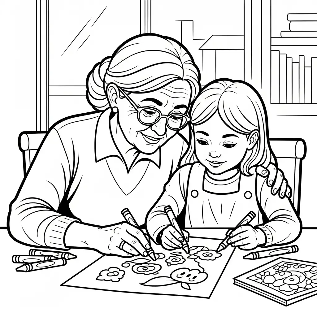 Desenho de Avó e Netinha para colorir