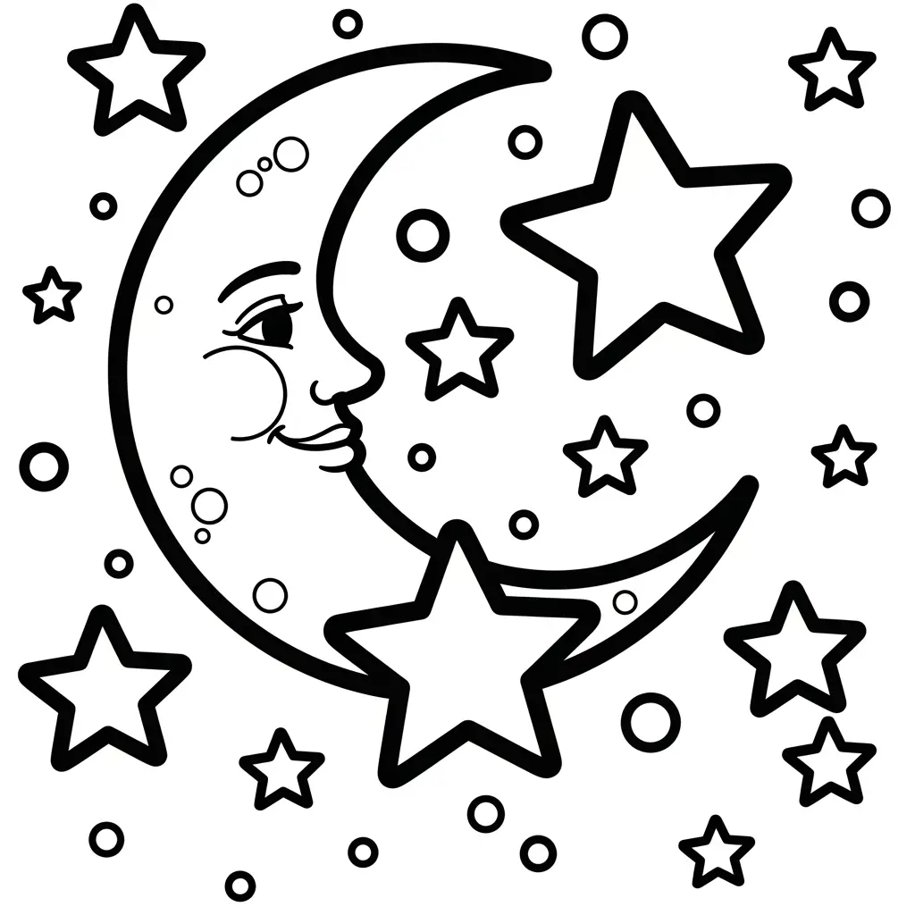 Desenho de Estrela e Lua para colorir