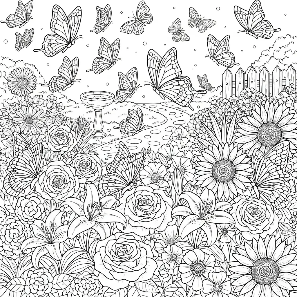 Desenho de Jardim com Borboletas para colorir