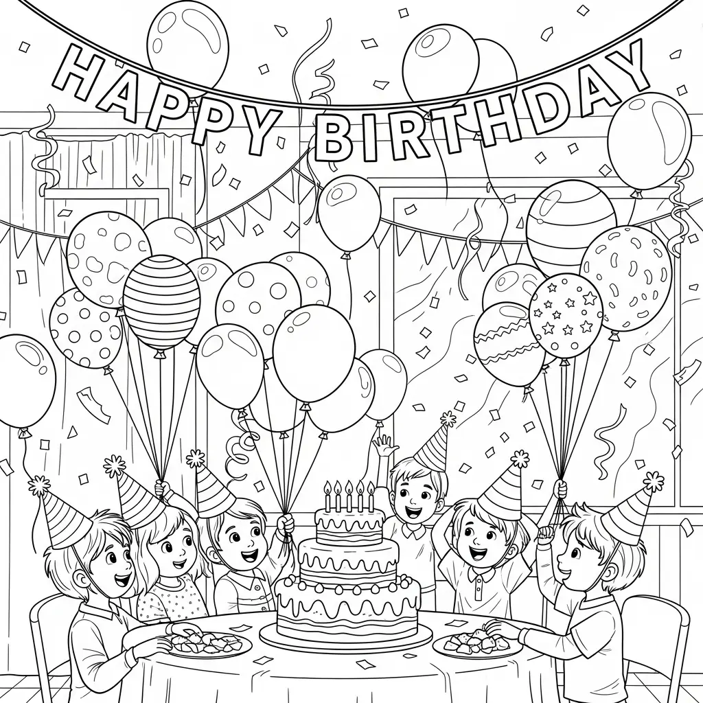 Festa de aniversário com balões para colorir
