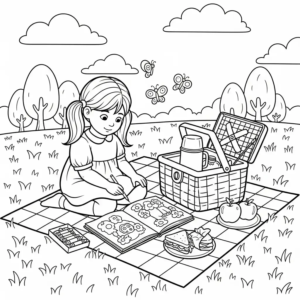 Garota em um picnic para colorir