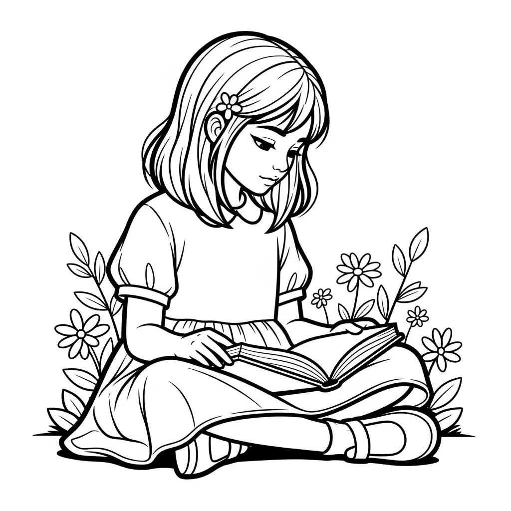 Menina com um livro para colorir