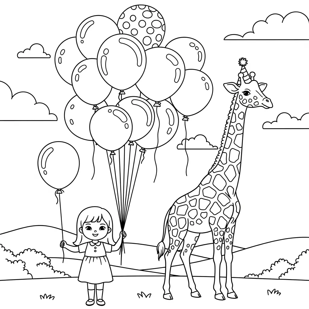 Menina girafa e balões para colorir