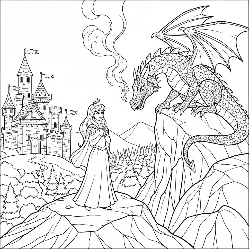 Princesa e dragão para colorir