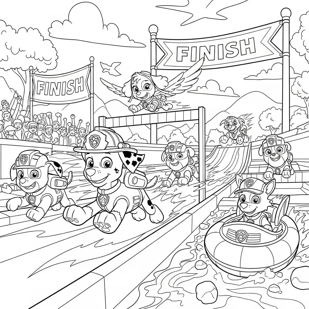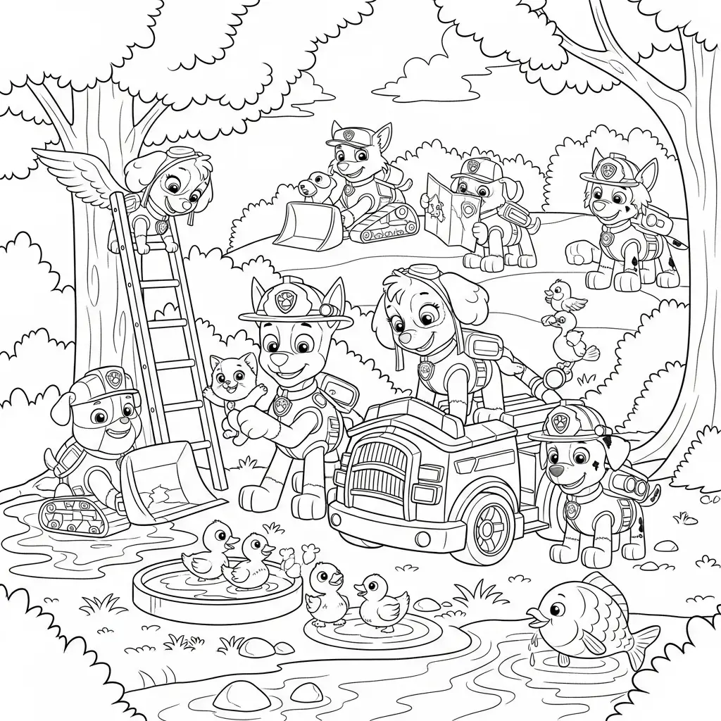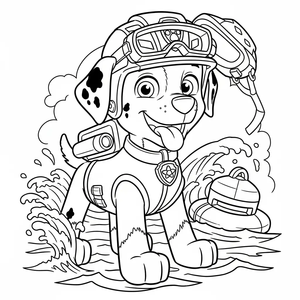Desenho da Patrulha Canina em um resgate aquático para colorir