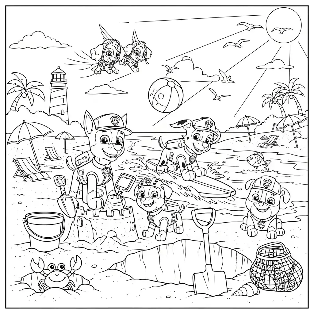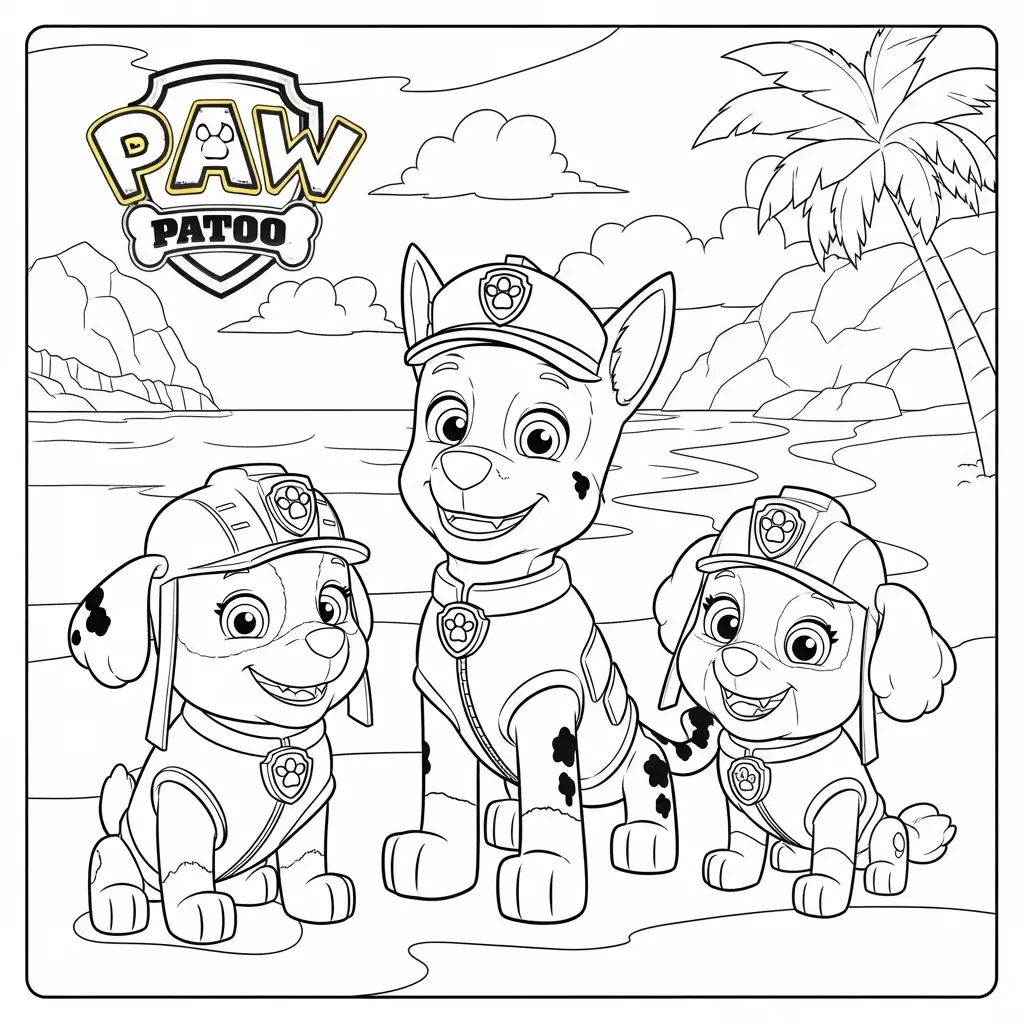 Desenho da Patrulha Canina em uma aventura na praia para colorir