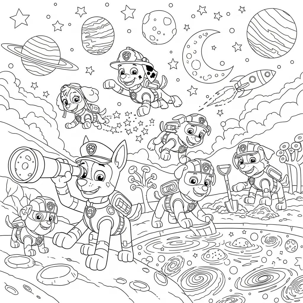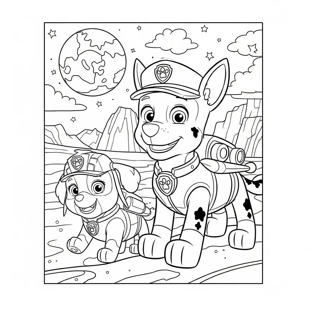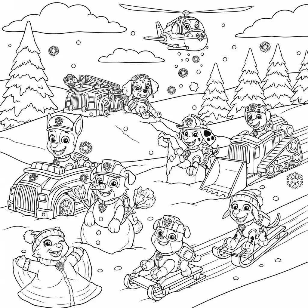 Desenho da Patrulha Canina em uma expedição na montanha para colorir