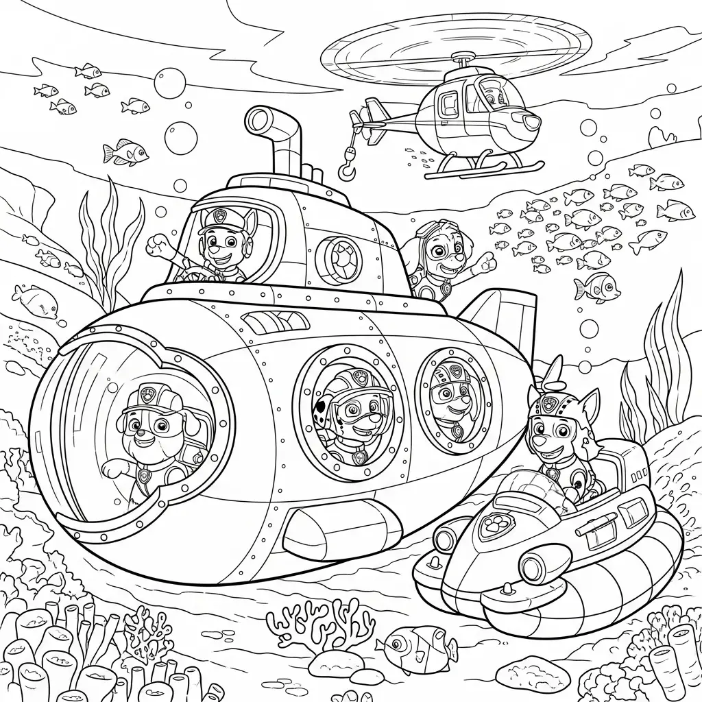 Desenhos da Patrulha Canina para colorir no fundo do mar