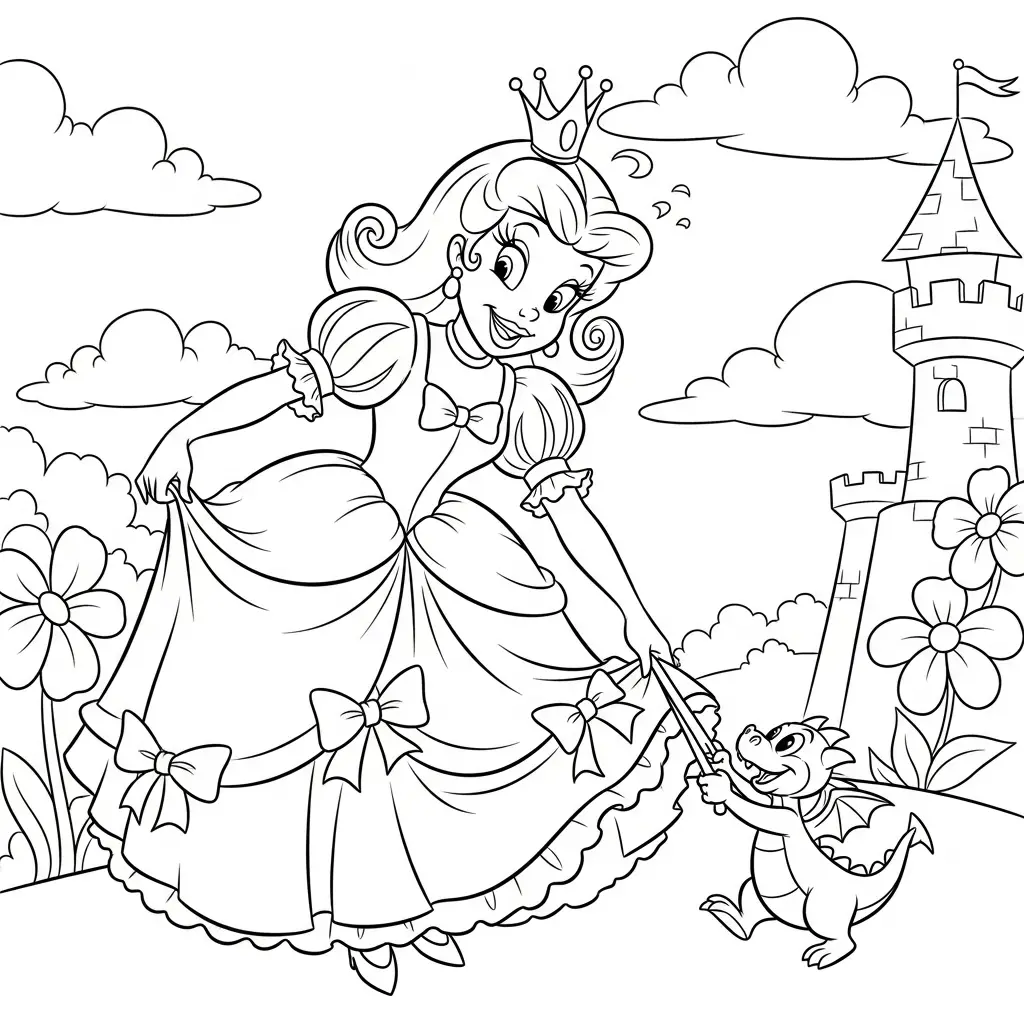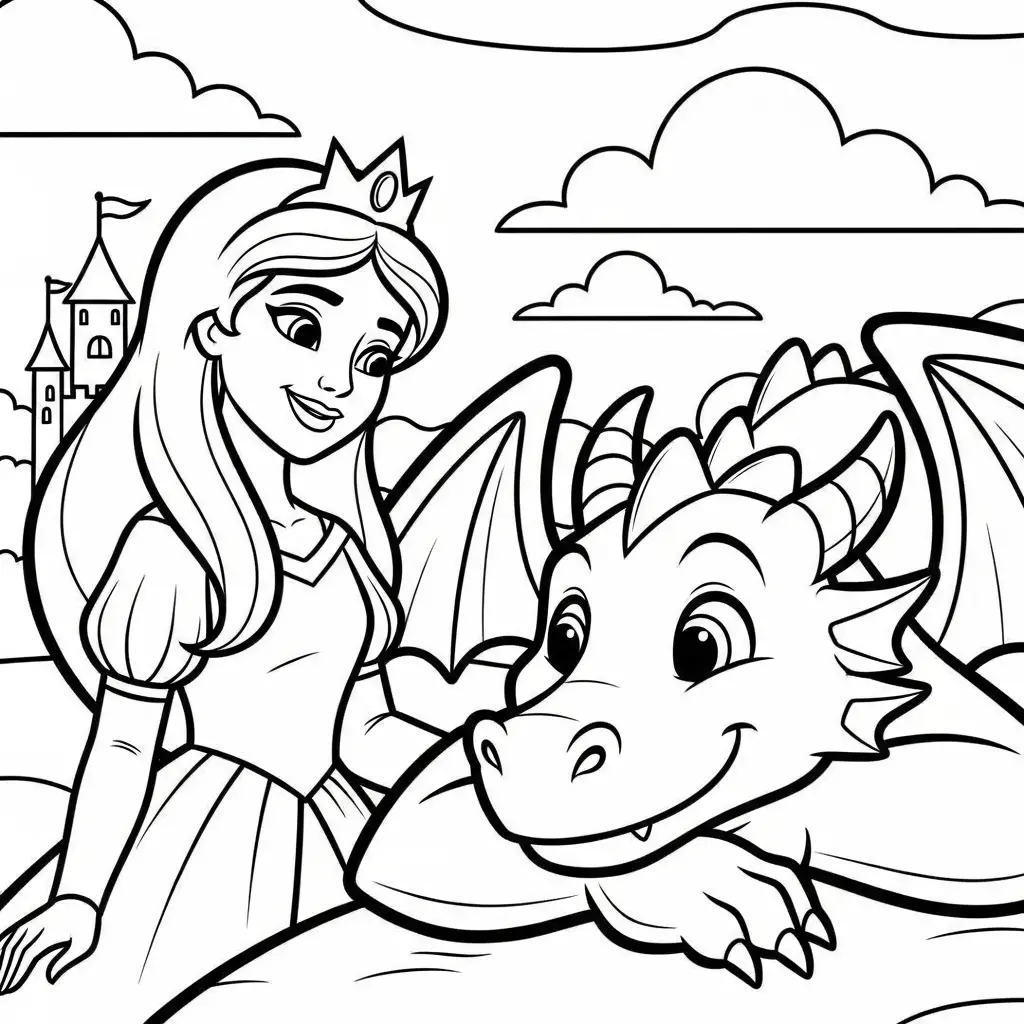 Desenho de Princesa com dragão amigável para colorir
