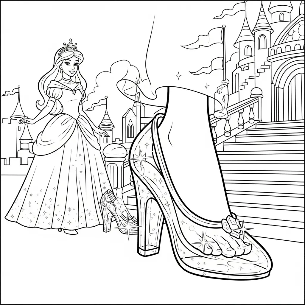 Desenho de Princesa com sapatos de cristal para colorir