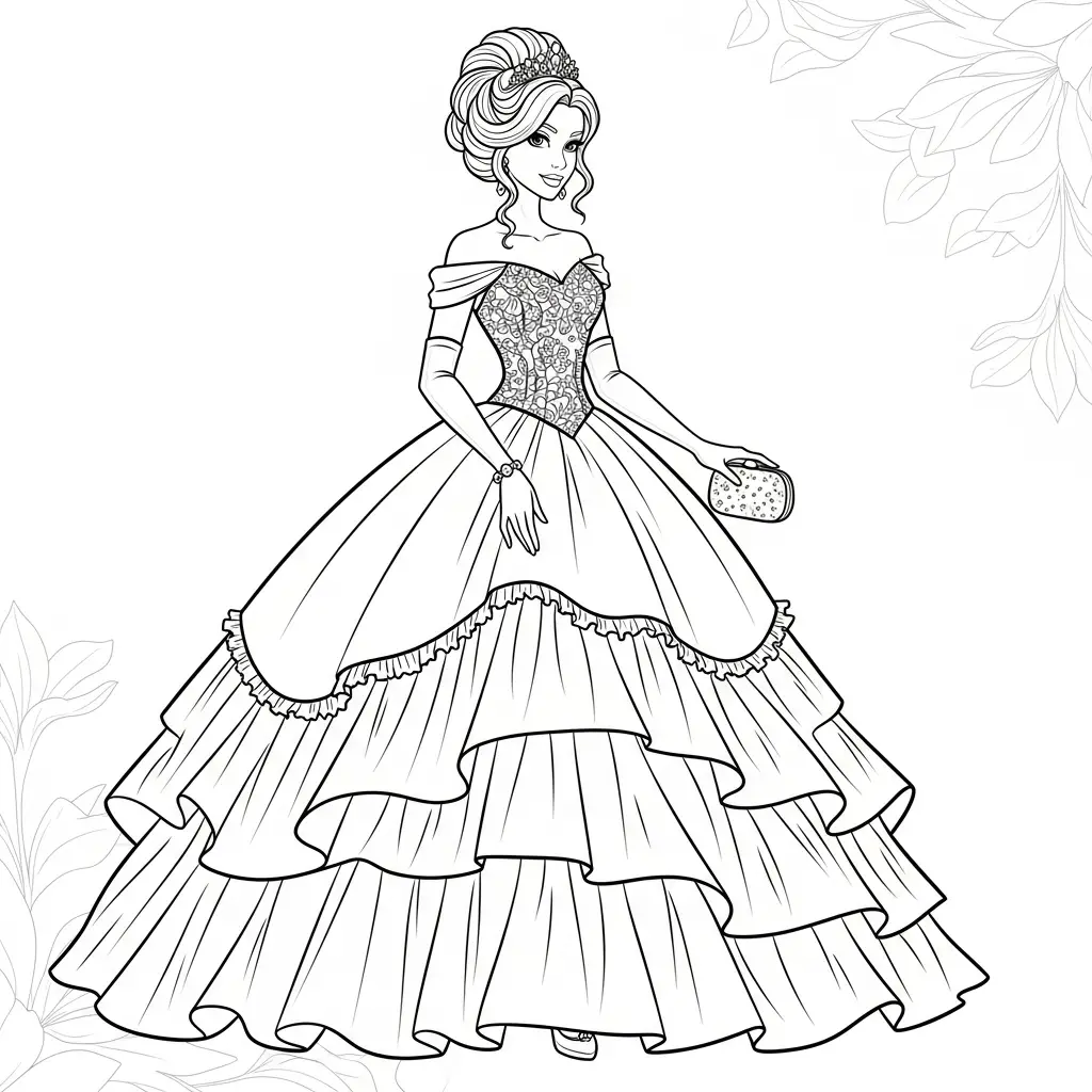 Desenho de Princesa com vestido de baile moderno para colorir