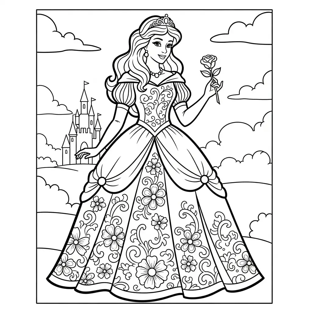 Desenhos de Princesas para Colorir em Estilo Detalhado