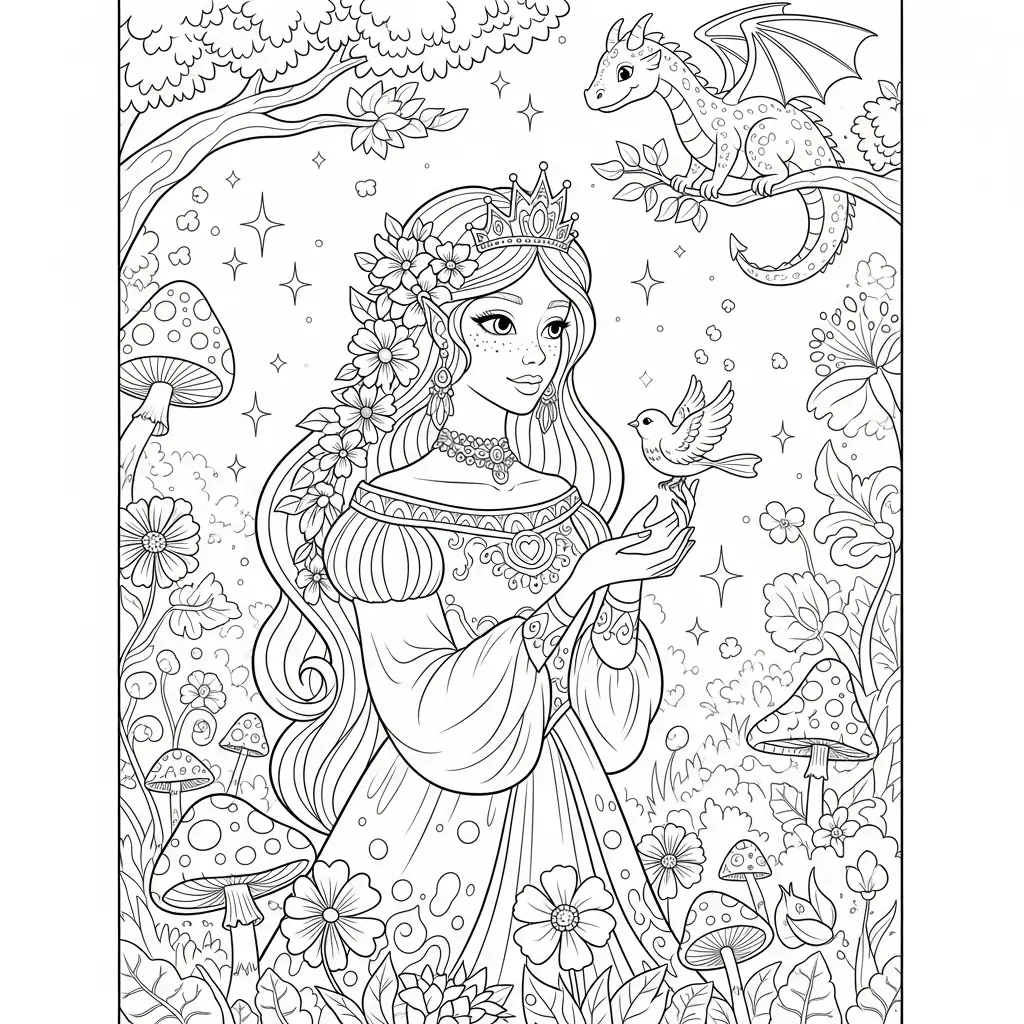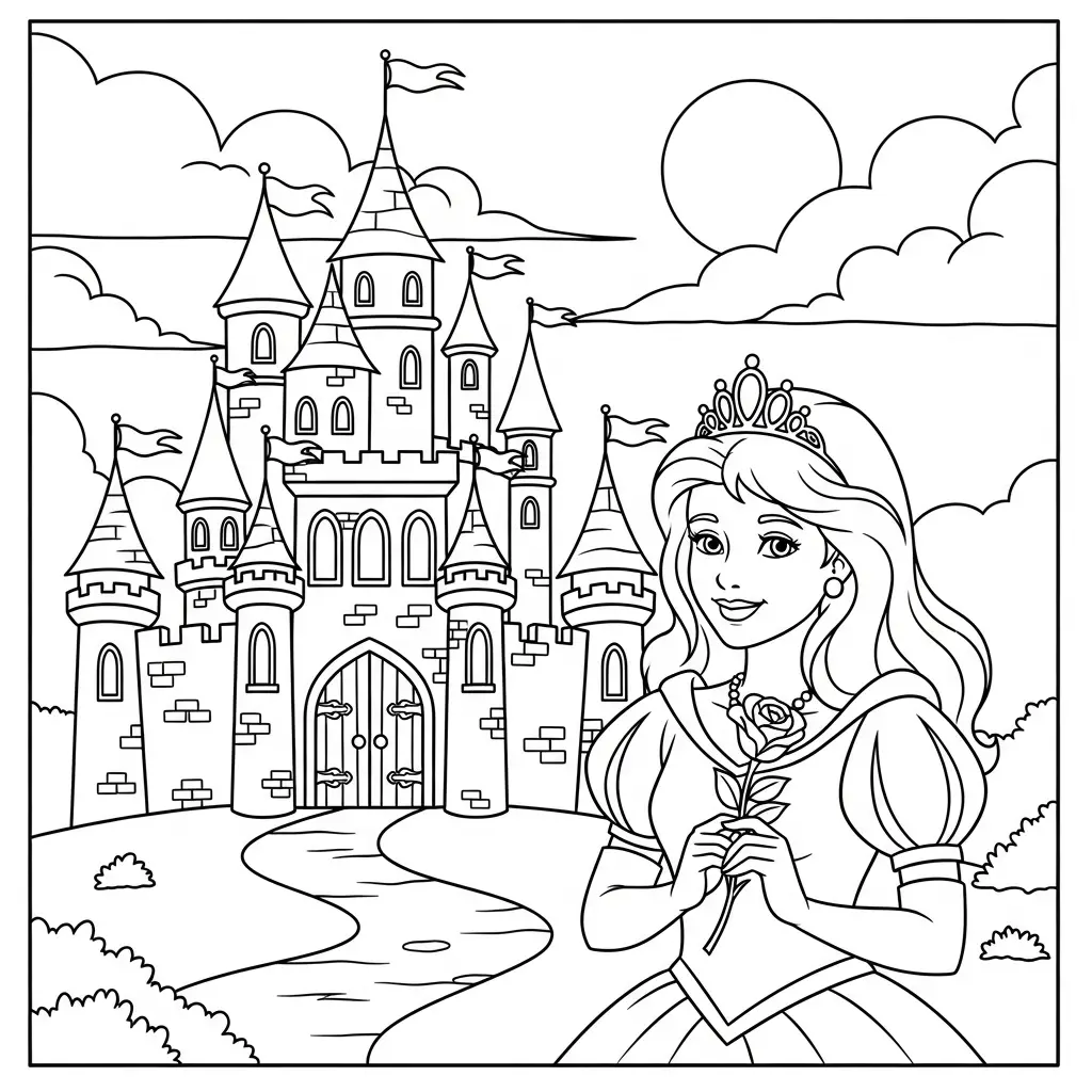 Desenho de Princesa em um mundo de contos de fadas para colorir
