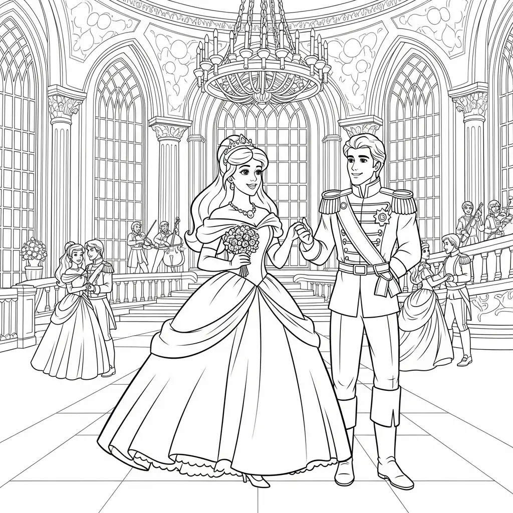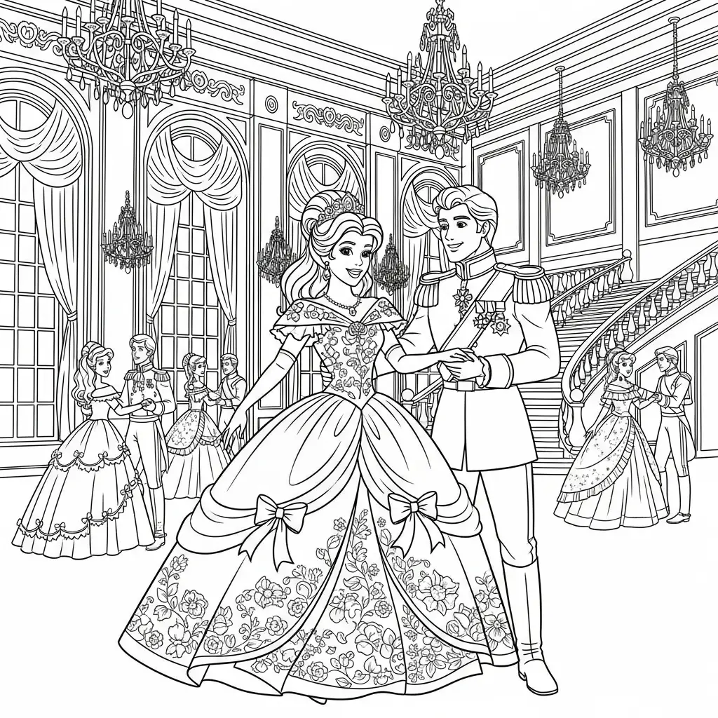 Desenho de Princesa em um baile elegante para colorir