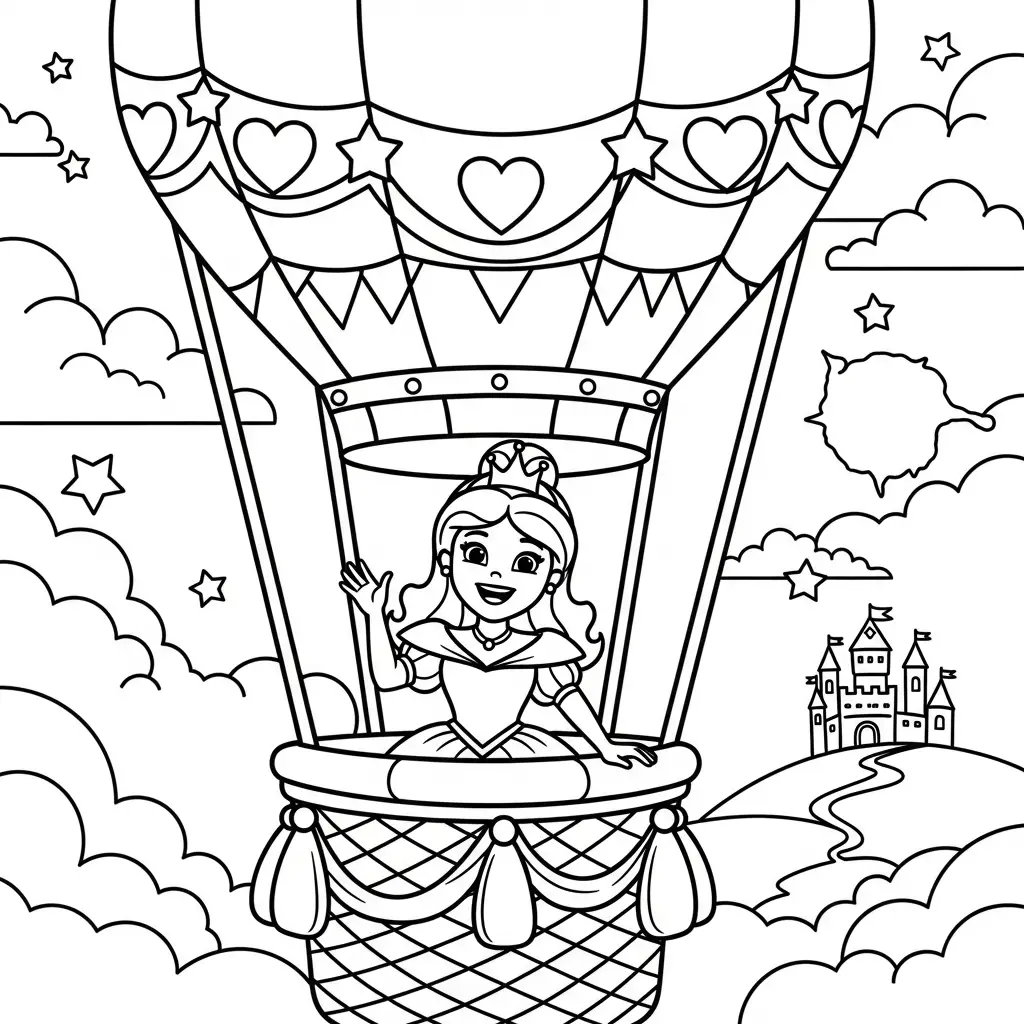Desenho de Princesa em um balão de ar quente para colorir