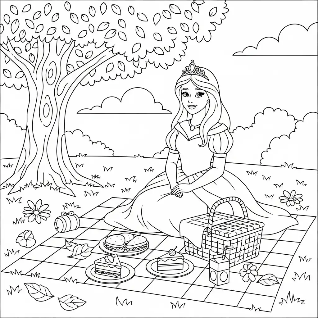 Desenho de Princesa fazendo um piquenique para colorir