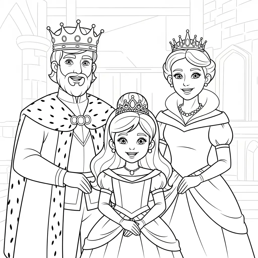 Desenho de Princesa rei e rainha para colorir