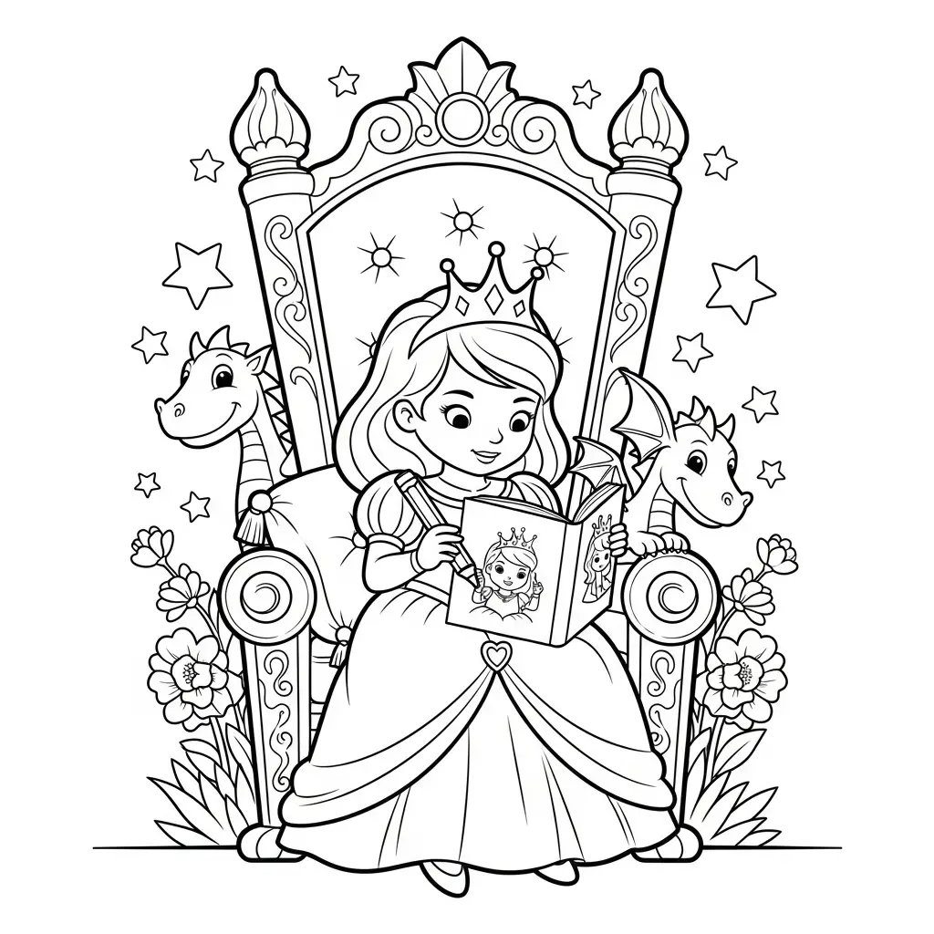 Desenho de Princesa sentada em um trono para colorir