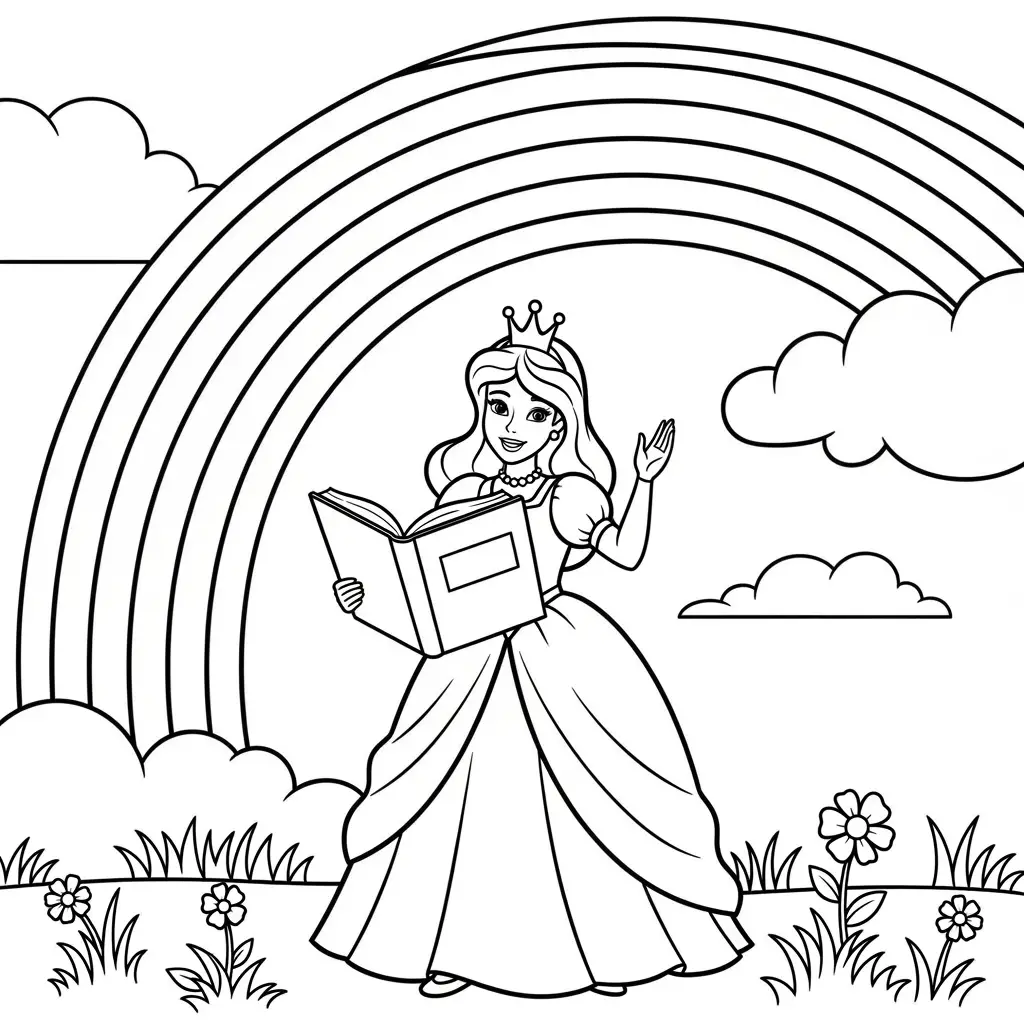 Desenho de Princesa sob um arco-íris para colorir