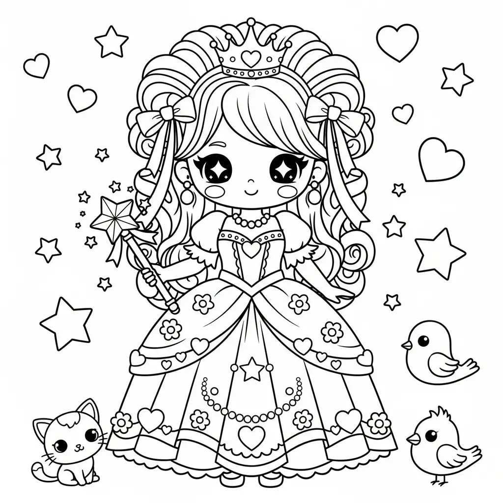 Desenhos de Princesas para Colorir Estilo Kawaii
