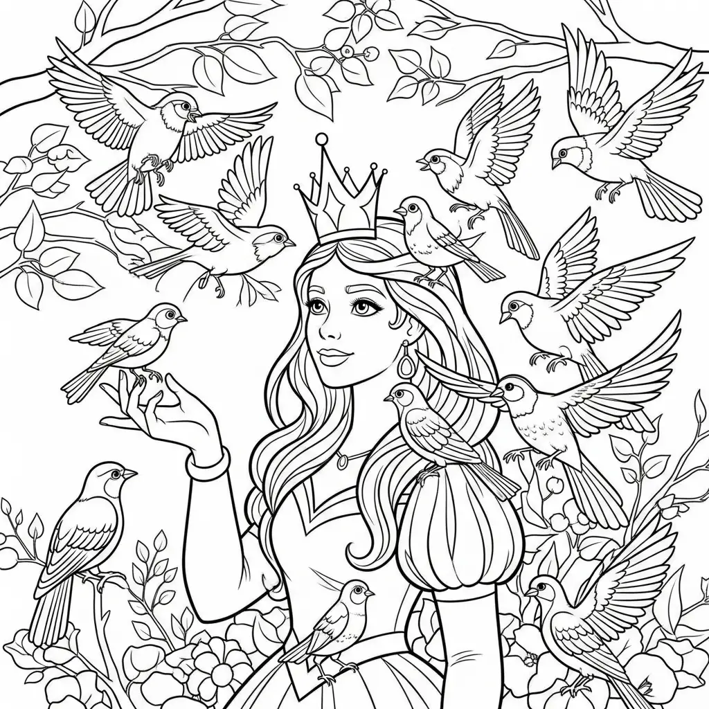 Desenhos de Princesas para Colorir com Pássaros