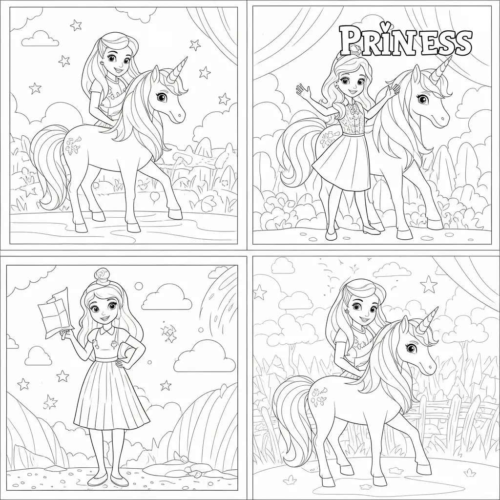Desenhos de Princesas para Colorir em Estilo Simples