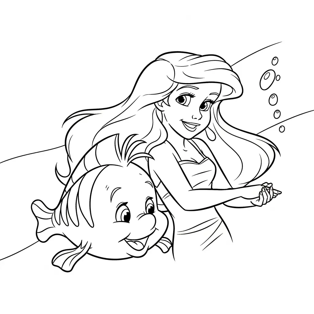 Desenho da Ariel com Flounder para colorir