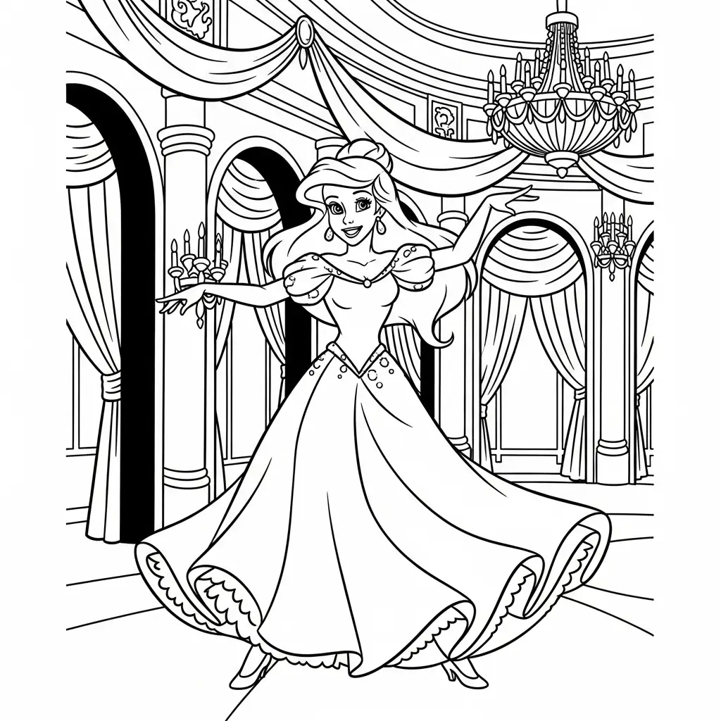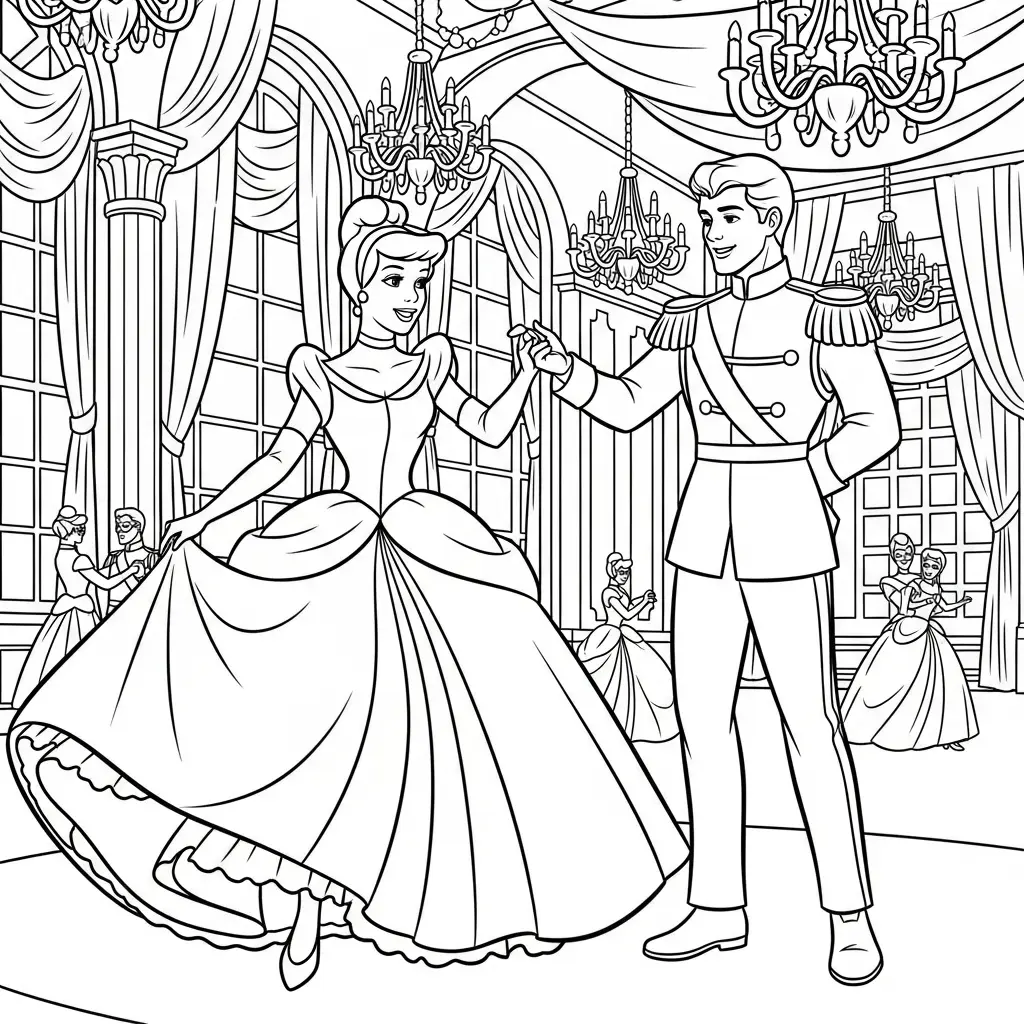 Desenho da Cinderela em um baile para colorir