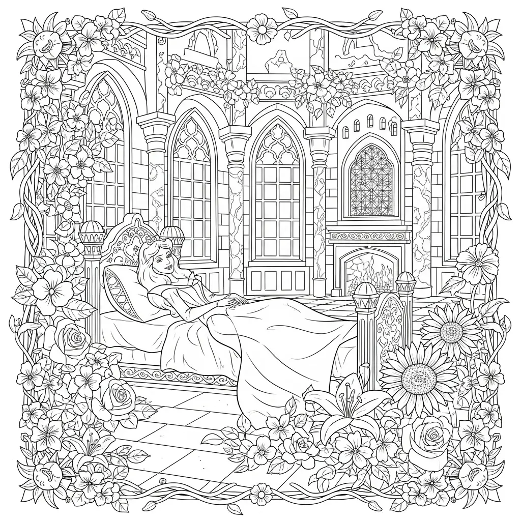 Desenho da Bela Adormecida para colorir