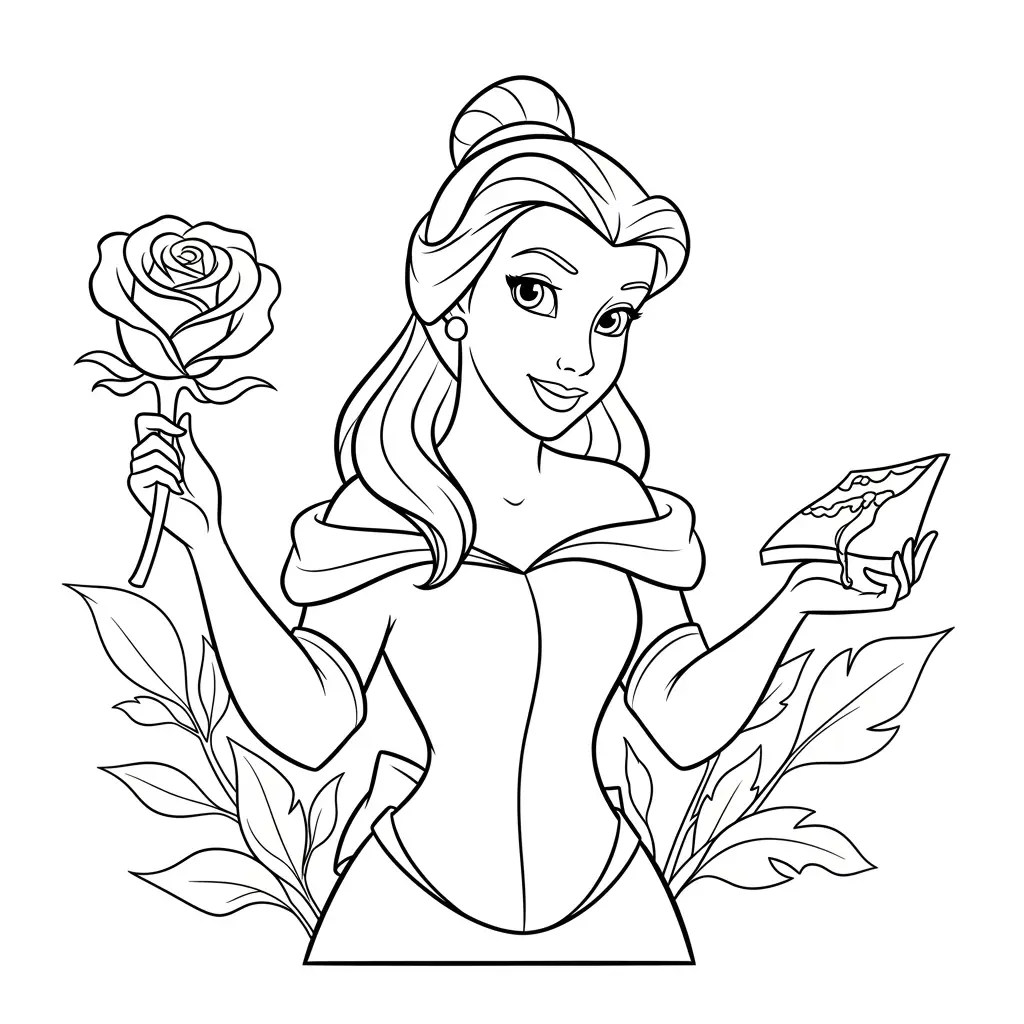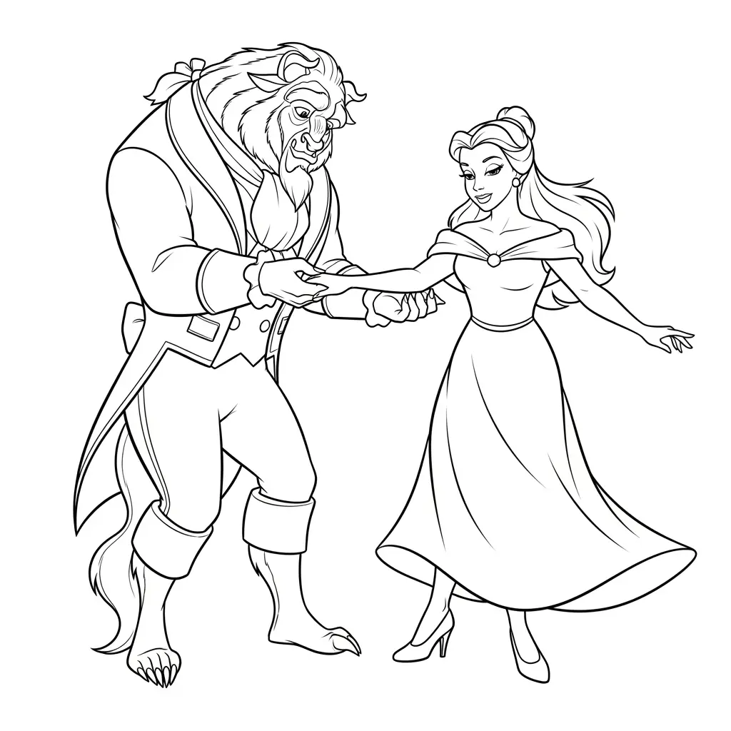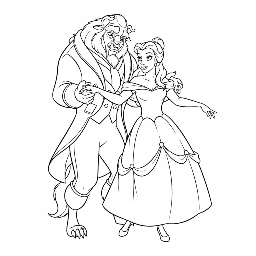 Desenho da Belle com a Fera para colorir