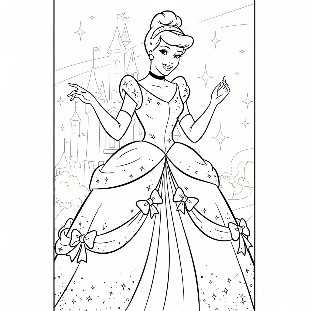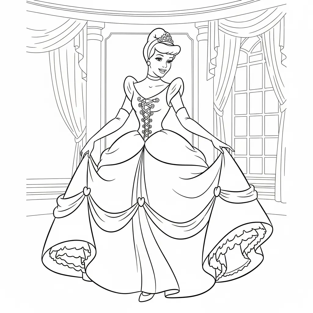 Desenho da Cinderela e seu vestido mágico para colorir