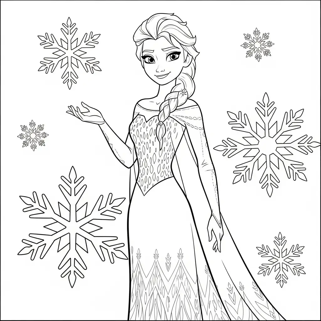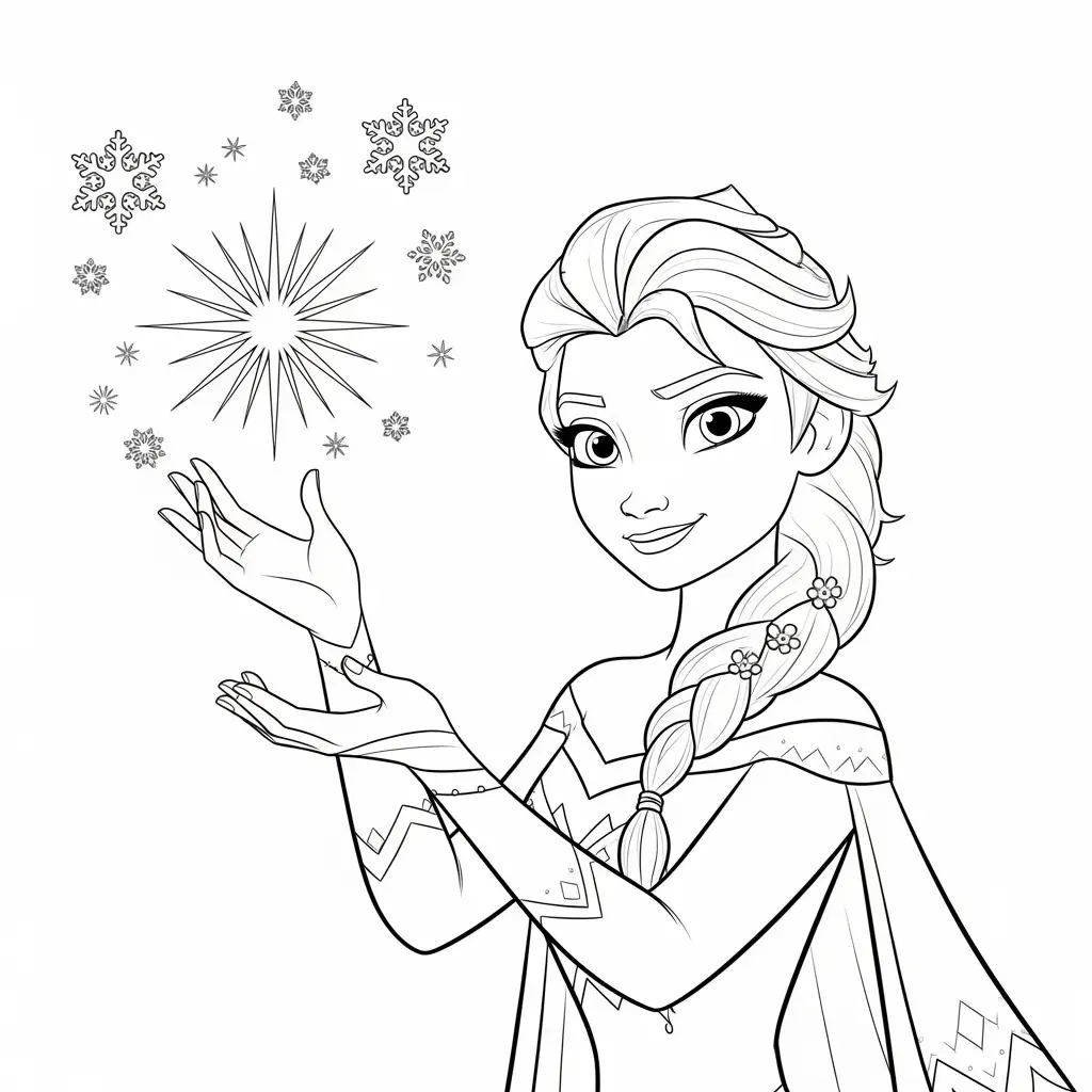 Desenho da Elsa com neve para colorir