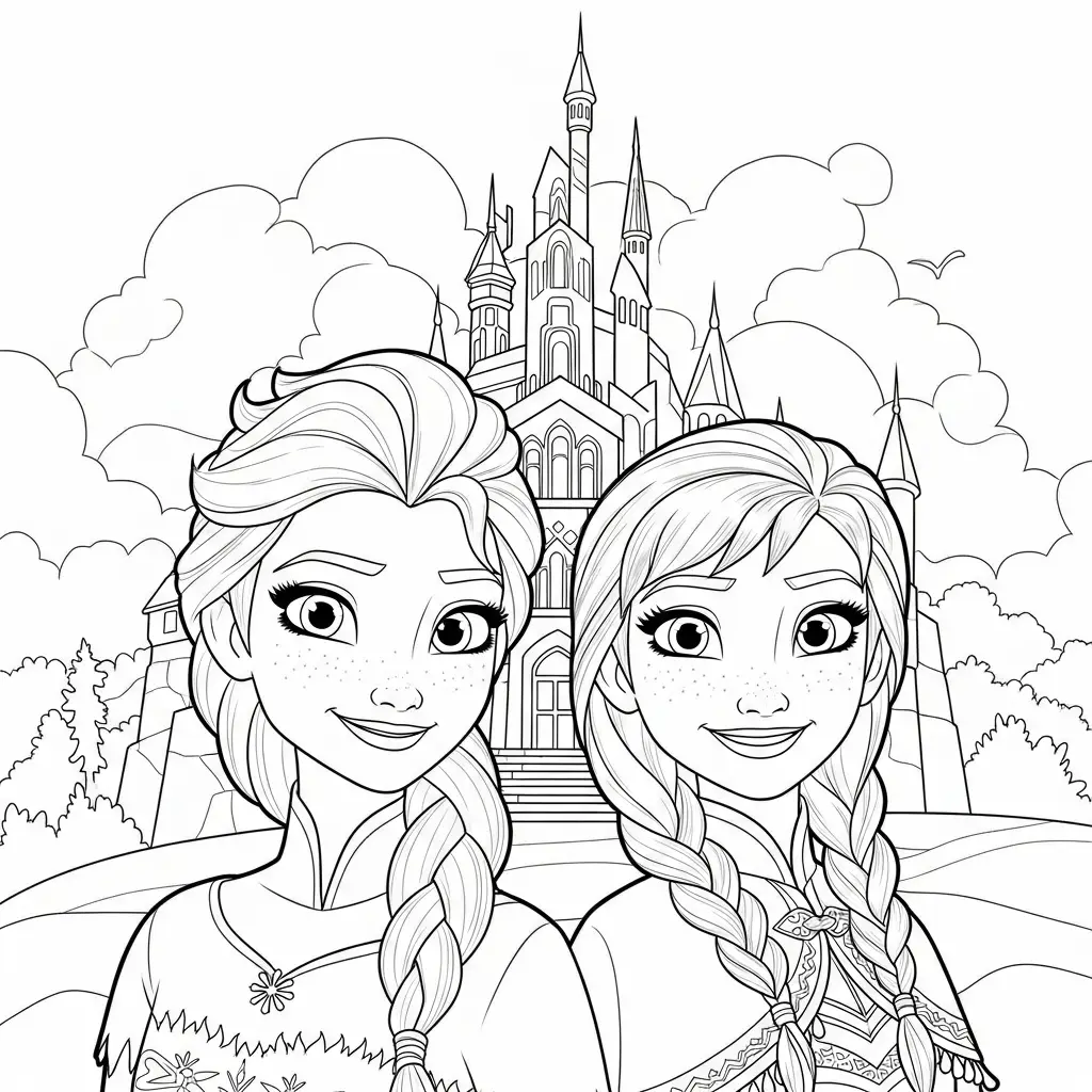 Desenho da Elsa e Anna para colorir