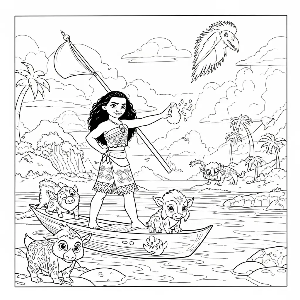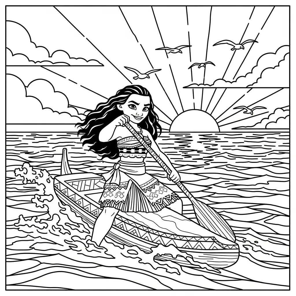 Desenho da Moana navegando para colorir
