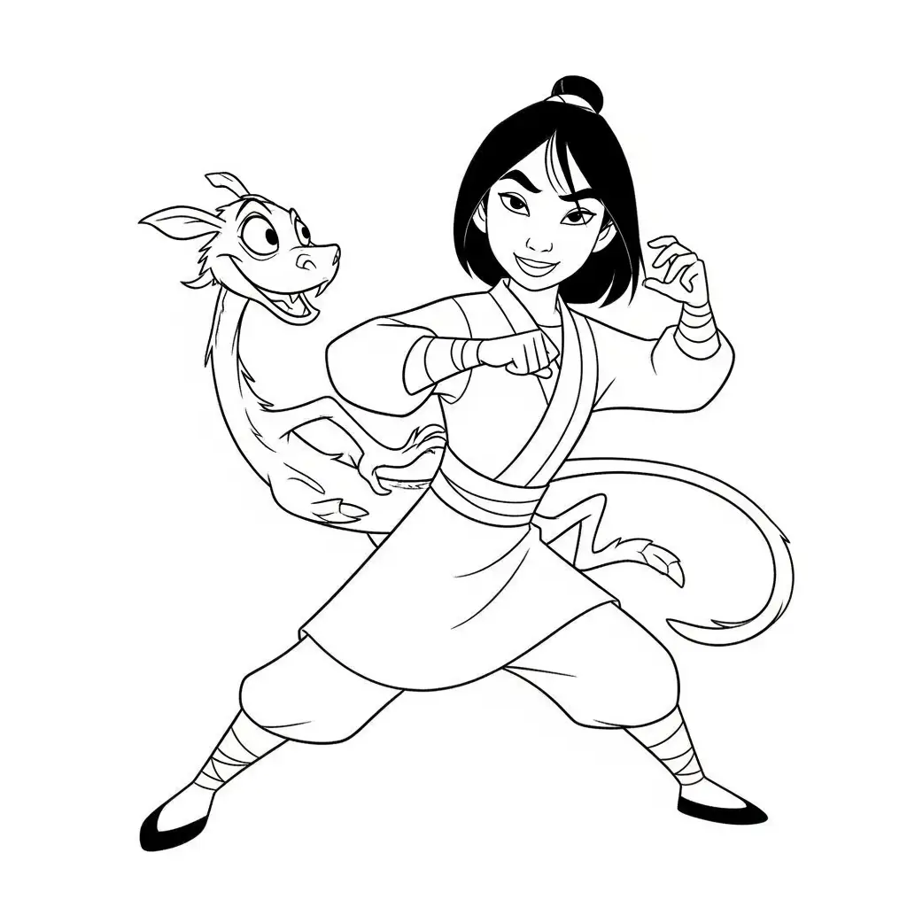 Desenho da Mulan e seu dragão Mushu para colorir