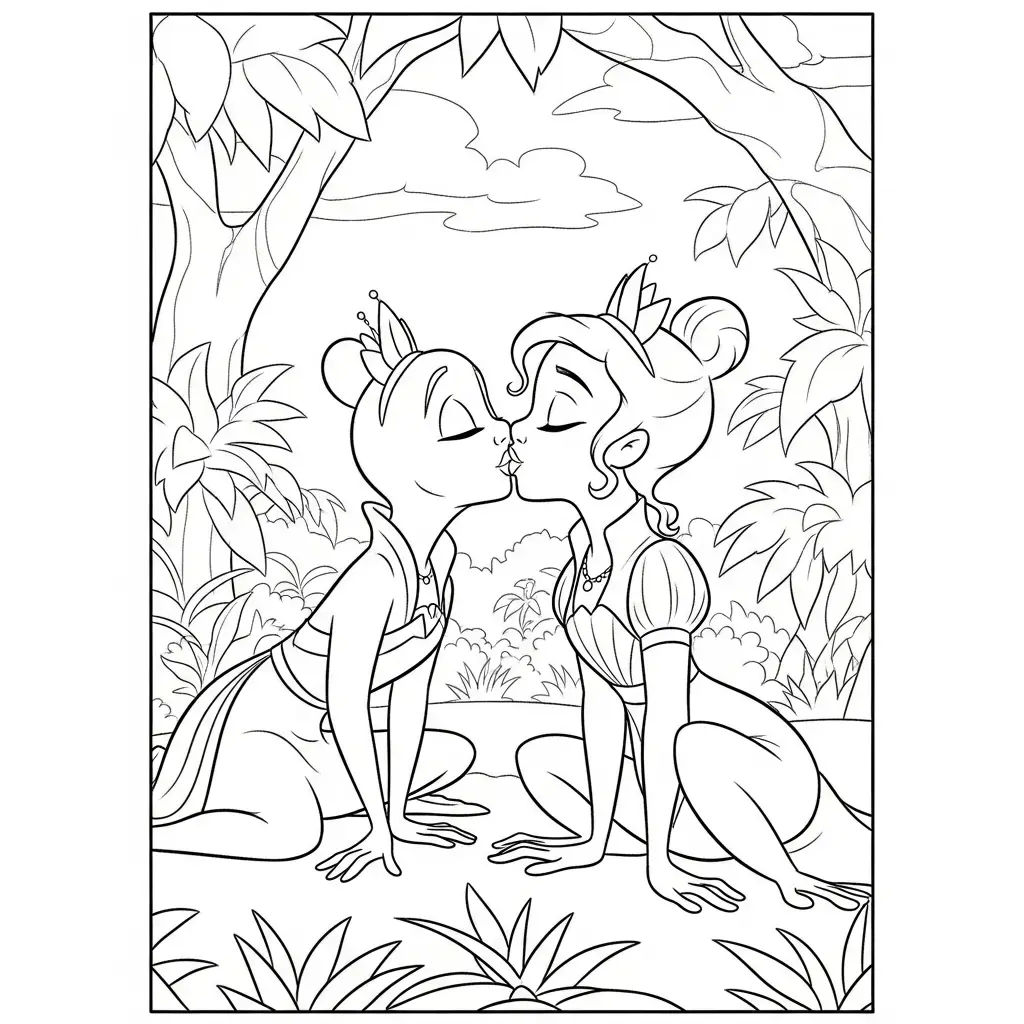 Desenho da Tiana e o Sapo para colorir