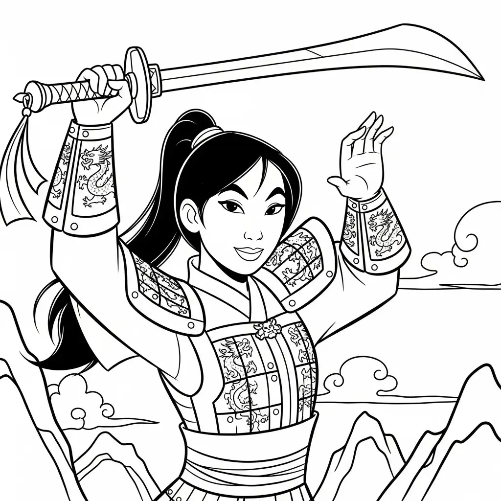 Desenho da Fa Mulan para colorir