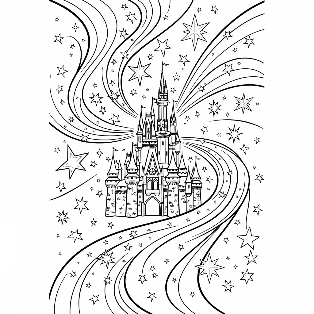 Desenho da Bela Adormecida em seu castelo para colorir